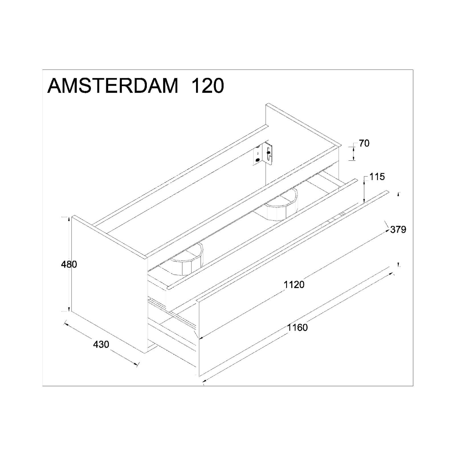 Amsterdam 120cm Wastafelmeubel / Dorado