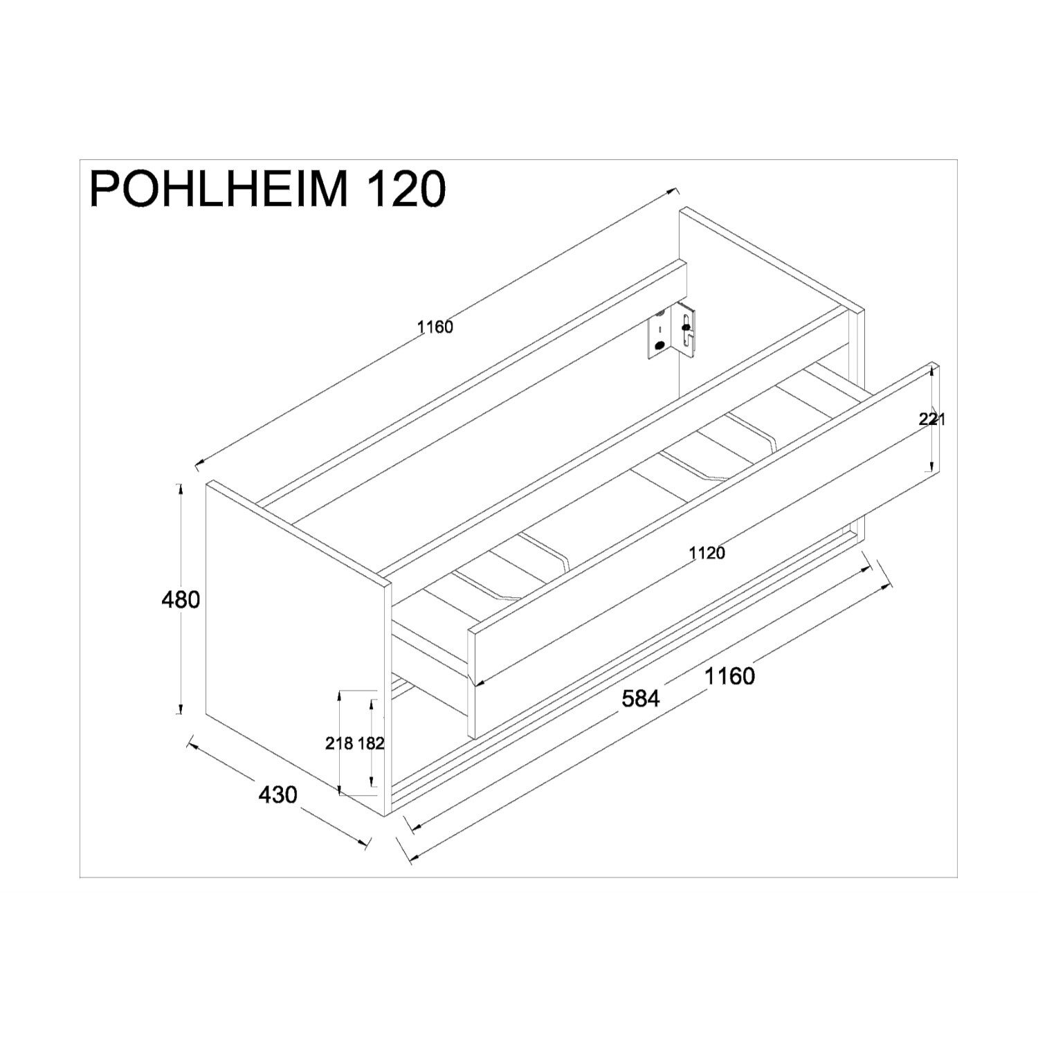 Pohlheim 120cm Wastafelmeubel / Lissabon