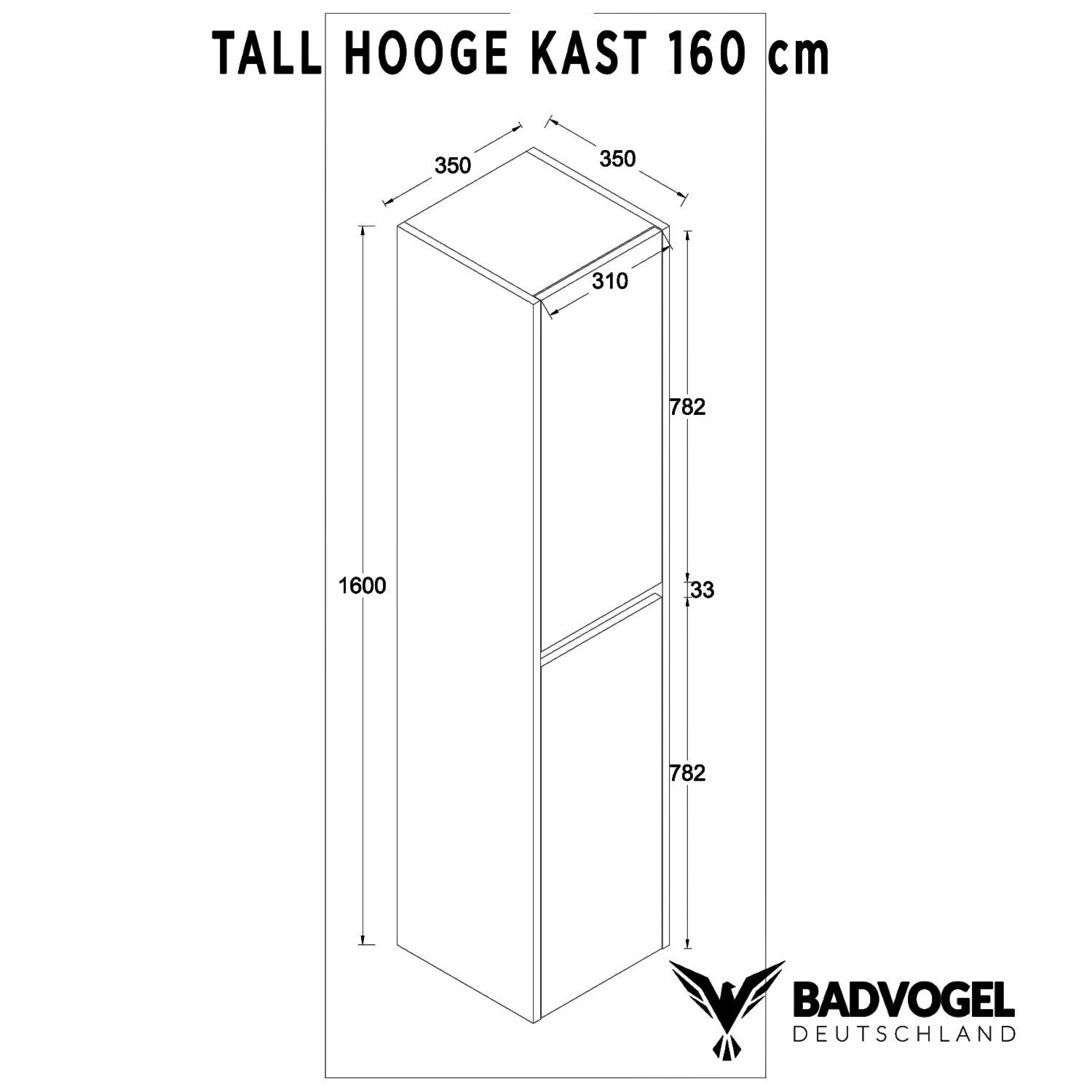 Hogekast Tall Collection 160cm / Mat Zwart
